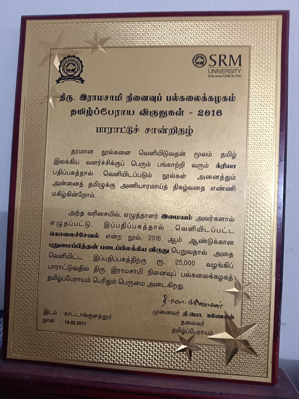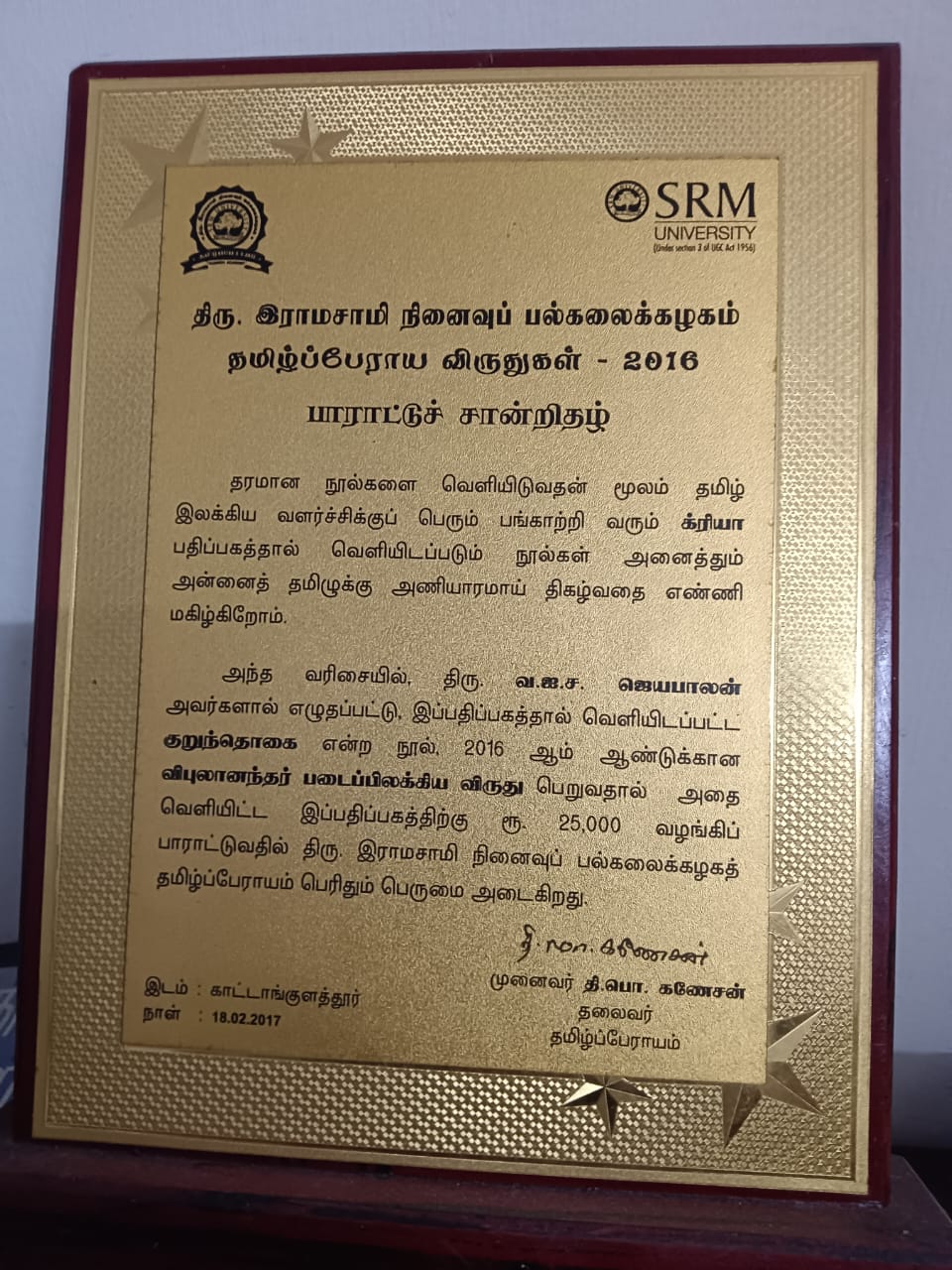 வெளியீட்டுகளுக்கு SRM தமிழ் பேராய விருதுகள் பெற்றிருக்கிறது.