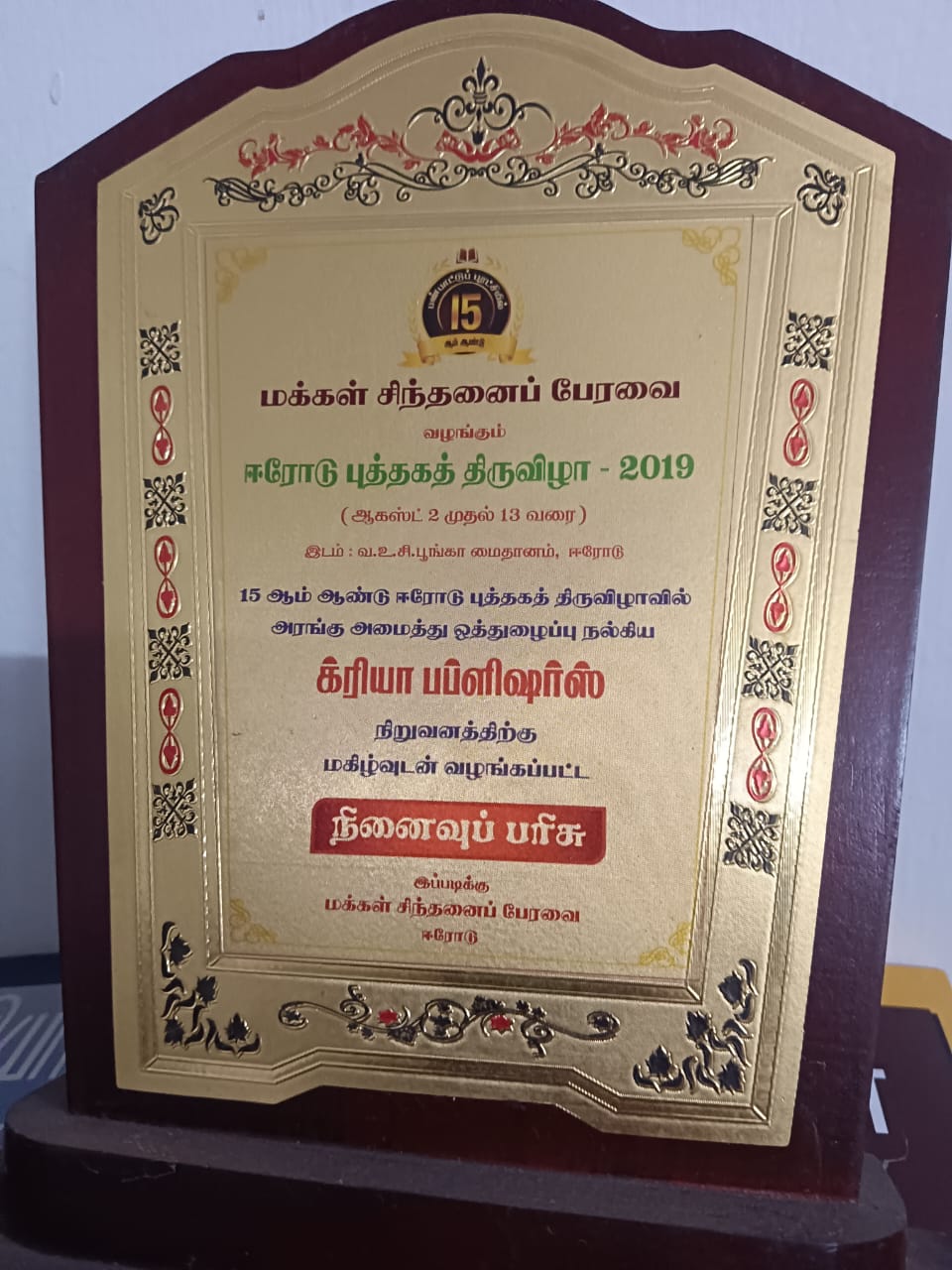 தமிழ்நாட்டு அரசின் "சிறந்த பதிப்பகம்" விருது பெற்றது.